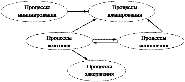 Процессы управления проектами могут быть разбиты на пять групп по одному или более процессу в каждой: