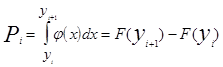определяется из выбранного теоретического распределения вероятность попадания случайной величины в i-ый интервал.