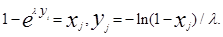 Пример 2. Необходимо получить случайные числа yi с показательным законом распределения.