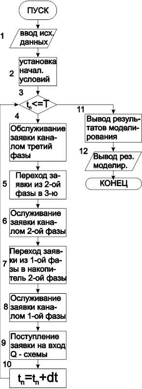 Рис. 8.5. Блок схема моделирования Q-схемы по принципу "Dt".