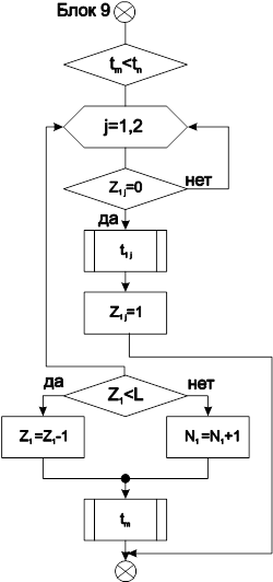 zk,j, tk,j, j=1, Lkm; zi - число заявок в накопителе Hi; i=1,2; ti - i-ая заявка из источника.