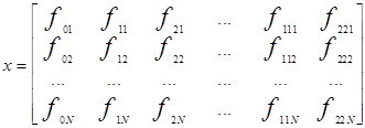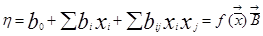 - вектор коэффициентов. Для двух факторов имеем: f0=1, f1=x1, f2=x2, f12=x1x2, f11=x12, f22=x22.
