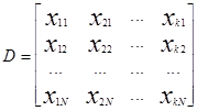 где xin - значение, которое принимает i-ая переменная в u-ом испытании. i=1…k, u=1...N. Матрица D называется планом эксперимента.