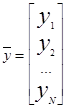 Реализовав испытания в N очках области факторного пространства, определённом планом эксперимента, получим вектор наблюдений имеющий следующий вид: