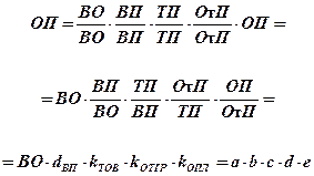 Последовательность сомножителей в модели подчиняется экономическому смыслу. При перемножении сомножителей слева направо и справа налево каждый раз получается экономический осмысленный показатель: