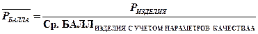 Для оценки качества и конкурентоспособности изделия возможно применение метода балльной оценки, в соответствии с которым каждому качественному параметру изделия выставляется балл с учетом значимости этого параметра для изделия в целом и избранной для оценки шкалы - 5- 10- 100-балльной. После этого определяется средний балл изделия, характеризующий уровень его качества в баллах. Путем деления цены изделия на средний балл исчисляют стоимость одного среднего балла: