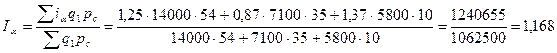 Разница числителя и знаменателя этого индекса показывает экономический эффект от изменения качества продукции. Если значение числителя больше знаменателя, то налицо повышение качества продукции, в результате которого предприятие получает накопление, и наоборот.