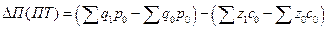 Данная индексная модель интересна тем, что она может быть использована для статистического анализа финансового положения предприятия, поскольку увязывается с показателем прибыли от реализации продукции. Ведь рост производительности на любом предприятии рассматривается не как самоцель, а как способ увеличения прибыли. Прирост прибыли, вызванный изменением реальной производительности труда, может быть рассчитан по следующей формуле: