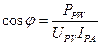 В симметричных трехфазных системах коэффициент мощности можно рассчитать по результатам измерения активной мощности и линейных тока и напряжения по формуле