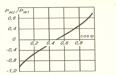 При этом упрощает процесс определения коэффициента мощности по показаниям двух ваттметров номограмма, приведенная на рис.12.1.
