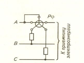 Рис.12.3. Схема включения фазометра в трехфазной системе.