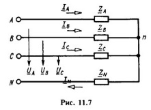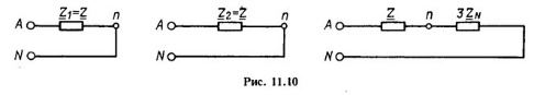 Рассмотрим, например, трехфазную симметричную цепь (рис. 11.7), в которой Z A = Z B= Z C= Z.
