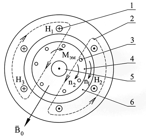 Следовательно, в рассматриваемой системе возможно только асинхронное (несинхронное) вращение ротора относительно вращающегося магнитного поля статора.