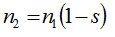 С учетом отношения, скорость вращения ротора может быть выражена через n1 и скольжение s: