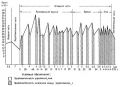 Рис. 40. Физиологическая кривая пульса во время урока гимнастики (пульс подсчитан до начала и после каждого упражнения основной части урока)