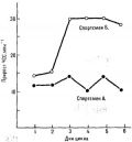 Ортостатическая проба — эффективный метод оценки степени восстановления после занятий. Ее лучше проводить по утрам, подсчитывая ЧСС в положении лежа еще до подъема с постели, а затем стоя. Если нужно охарактеризовать весь тренировочный день, то ортопроба проводится утром и вечером. На рис. 41 показаны результаты ежедневного применения ортопробы (оценка ее производилась по приросту ЧСС) в микроцикле у двух спортсменов. У спортсмена А. наблюдались минимальные колебания показателей. Это говорит о том, что он легко справлялся с тренировочными нагрузками. У спортсмена Б., начиная с 3-го дня тренировки, показатели ортопробы резко повысились, что свидетельствует о недостаточном восстановлении от одной тренировки к другой.