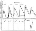 Рис. 43. Изменение индекса Гарвардского степ-теста (ИГСТ) у бегуна в течение 5-дневного микроцикла: по мере утомления ИГСТ уменьшается, но нормализуется после дня отдыха