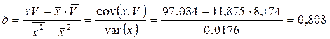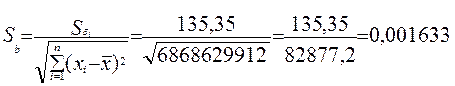 – среднеквадратическое (стандартное) отклонение параметра модели b. Для его расчета используем формулу (3.40) и таблицу 12.