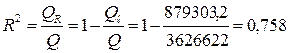 -критерия. Так как коэффициент детерминации уже известен, проще всего использовать формулу (2.36):