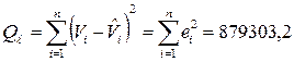 3. Проверим значимость подобранной модели на уровне α =0,05, используя коэффициент детерминации и критерий Фишера.