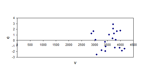 , либо на неоднородность дисперсии ошибок. Не наблюдается функциональной зависимости