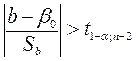 Нетрудно видеть, что при подстановке любого числа, большего 1 по абсолютной величине, данное неравенство выполняется. Так как наблюдаемое значение отношения больше табличного по абсолютной величине, такую гипотезу с вероятностью 0,95 следует отвергнуть. Это означает слишком большое отклонение оценки b от гипотетического значения