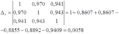 Коэффициент множественной корреляции определить через матрицу парных коэффициентов корреляции: