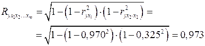 определяет тесноту связи с учетом степеней свободы общей и остаточной дисперсий. Он дает такую оценку тесноты связи, которая не зависит от числа факторов и поэтому может сравниваться по разным моделям с разным числом факторов. Оба коэффициента указывают на весьма высокую (более