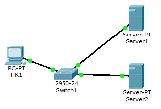 Задайте параметры протокола TCP/IP на ПК1 и серверах.