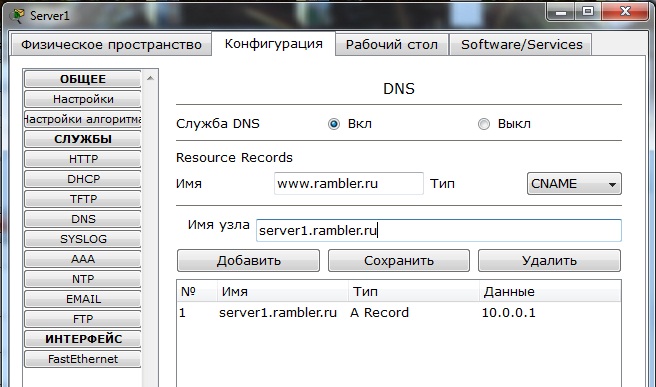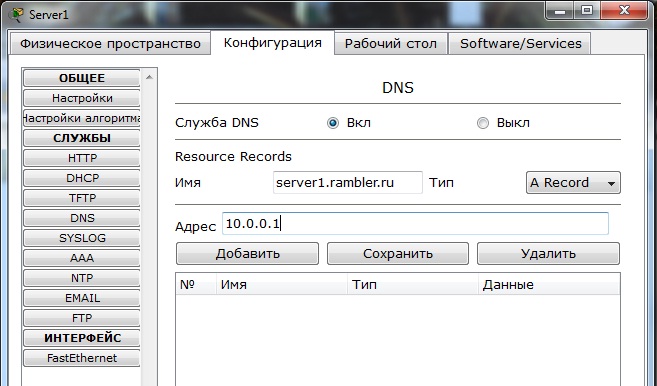 8. Продемонстрируйте настройку служба DNS в Cisco Paket Tracer?