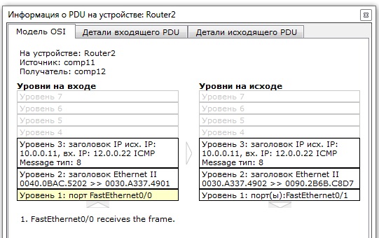 Перейдите в этот режим и посмотрите состав пакета при прохождении через оба роутера (рис. 7.2).