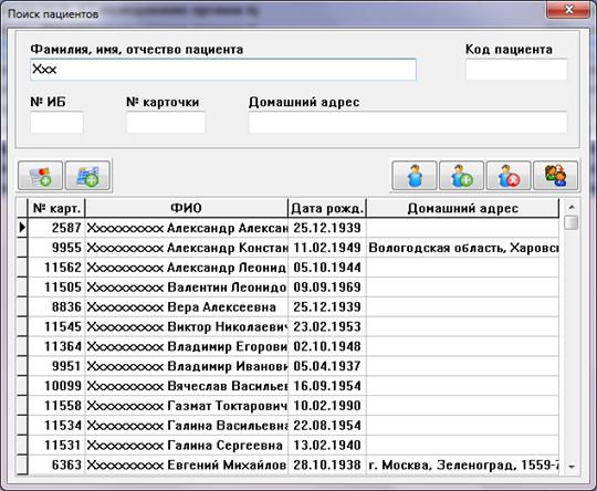 Рис. 4.3.1. Окно «Поиск пациентов»