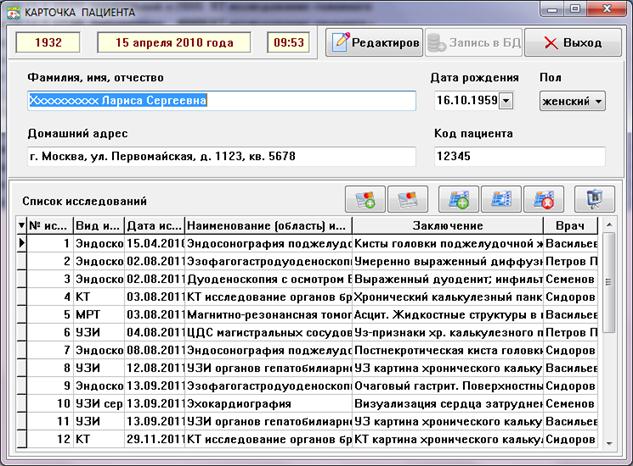 Рис. 4.4.1. Окно «Карточка пациента».