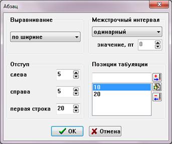 Рис. 4.5.6. Окно управления форматированием текущего абзаца текста «Абзац».