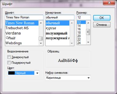 Рис. 4.5.7. Окно установки шрифта выбранного текста.