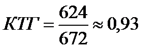 Коэффициент технической готовности (КТГ) – отношение фактического рабочего времени к номинальному: