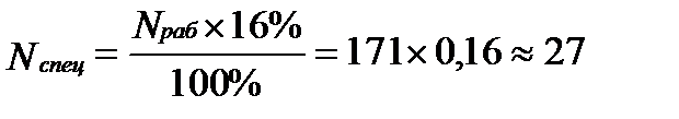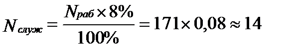 Численность специалистов и служащих определяются на основе их доли от численности рабочих: