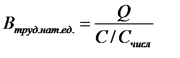 Основным показателем, характеризующим производительность труда, является выработка продукции на одного рабочего или работающего, которая может быть измерена в натуральных или стоимостных показателях. Производительность труда определяется количеством продукции, произведенной в единицу рабочего времени, или затратами труда на единицу произведенной продукции или выполнения работ. Расчётные формулы для этого показателя: