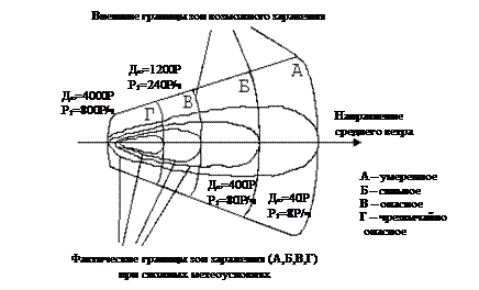 Рис. 10.3. Схема нанесения зон возможного заражения