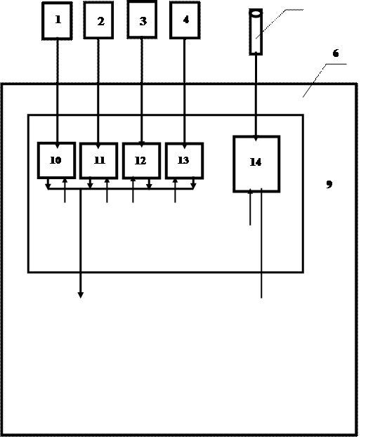 Как видно из схемы, в корпусе измерительного блока установлены модуль 8 АЦП/ЦАП Е154 (или Е14-140-М),к которому подключена плата 9 нормирующих преобразователей сигналов датчиков.