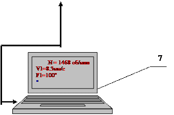 В модуле 8 АЦП/ЦАП производится предварительная цифровая обработка аналоговых сигналов, поступающих с датчиков. После чего оцифрованные сигналы по шине USB передаются в портативный компьютер 7, в котором по заданной программе осуществляется дальнейшая обработка цифрового сигнала (фильтрация, интерполяция, Фурье – анализ, вычисление параметров балансировки и т.д.).