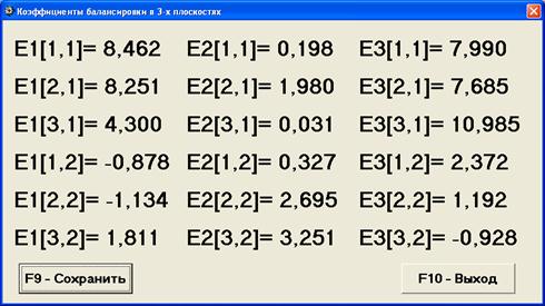 Рис. 7.24. Рабочее окно с коэффициентами балансировки в 3-х плоскостях.