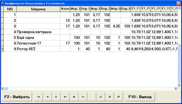 Как видно из рис. 7.23, при рабочем окне «Балансировочные грузы» помимо кнопки «Выход - F10» могут использоваться ещё две других управляющих кнопки - «Коэффициенты – F8», «В архив - F9».