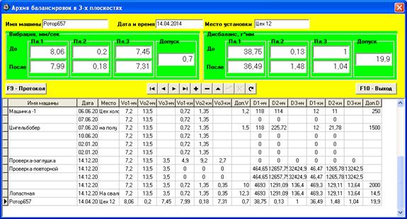Рис. 7.26. Рабочее окно «Архив балансировки в 3-х плоскостях»