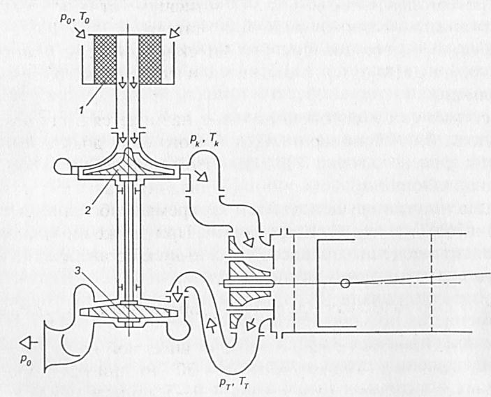 1 — воздушный фильтр; 2 — насосное колесо компрессора;