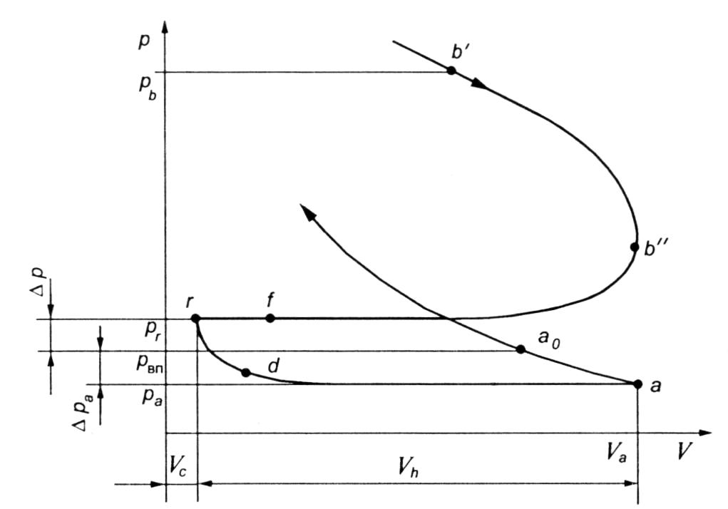 Процесс газообмена начинается с момента открытия выпускного клапана (рис. 5, точка b'), а заканчивается с закрытием впускного клапана (точка а0).