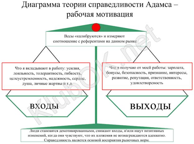 Каждый сотрудник сравнивает соотношение своих входов и выходов с соотношением их у других и в результате сравнения оценивает, была проявлена к нему справедливость или несправедливость. Несправедливость может существовать как в форме недоплаты (она переносится острее и вызывает возмущение), так и переплаты (у нормального человека при этом возникает чувство вины).