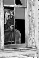 Изображение девочки поместилось за окном. Только рама окна перекрывает лицо. Отразим горизонтально изображение (меню Редактирование) и инструментом Перемещение подберем удачное положение.