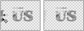 , нажмем Shift для ограничения направлений перемещения и перетащим «J» в левую часть окна изображения так, чтобы от буквы «J» была видна только часть. В палитре слоёв выберем слой «S», удерживая Shift, переместим букву S подобным образом вправо. Используя эту технику, передвинем слой “Bar” к верхнему краю изображения и слой “U” – к нижнему краю.