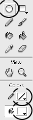 Создадим новый слой и назовем его "bevel". Выбираем опять Инструмент Oval (Овал) и рисуем круг, как на рисунке слева.